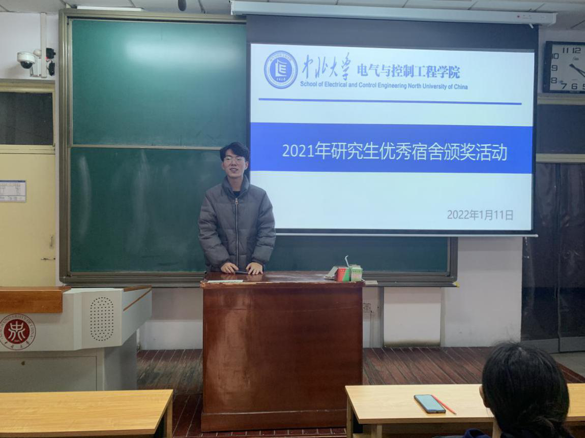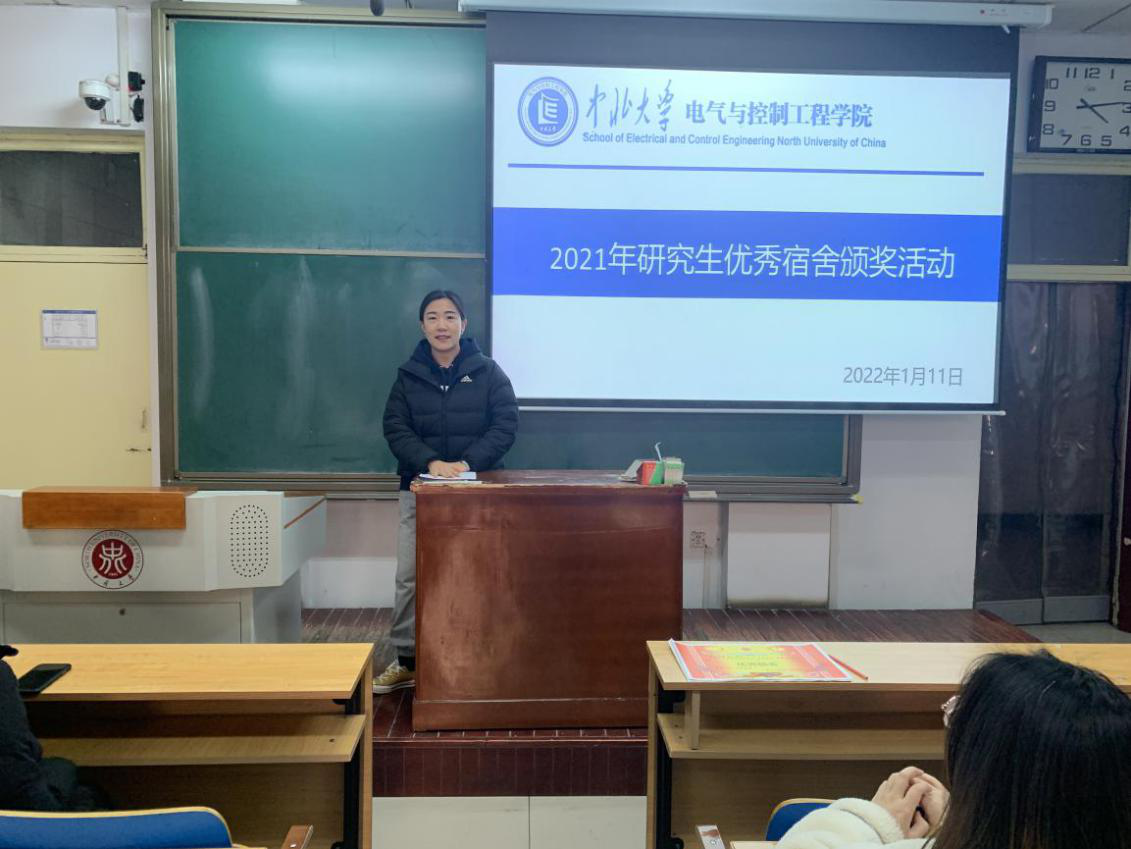 于2022年1月11日下午在11107H教室举办研究生2021年度“优秀宿舍”颁奖活动,研究生辅导员李婷老师、全体院研会成员、各班生活委员及各宿舍代表参加此次活动,活动由院研究生会生活就业部部长荆志伟主持。