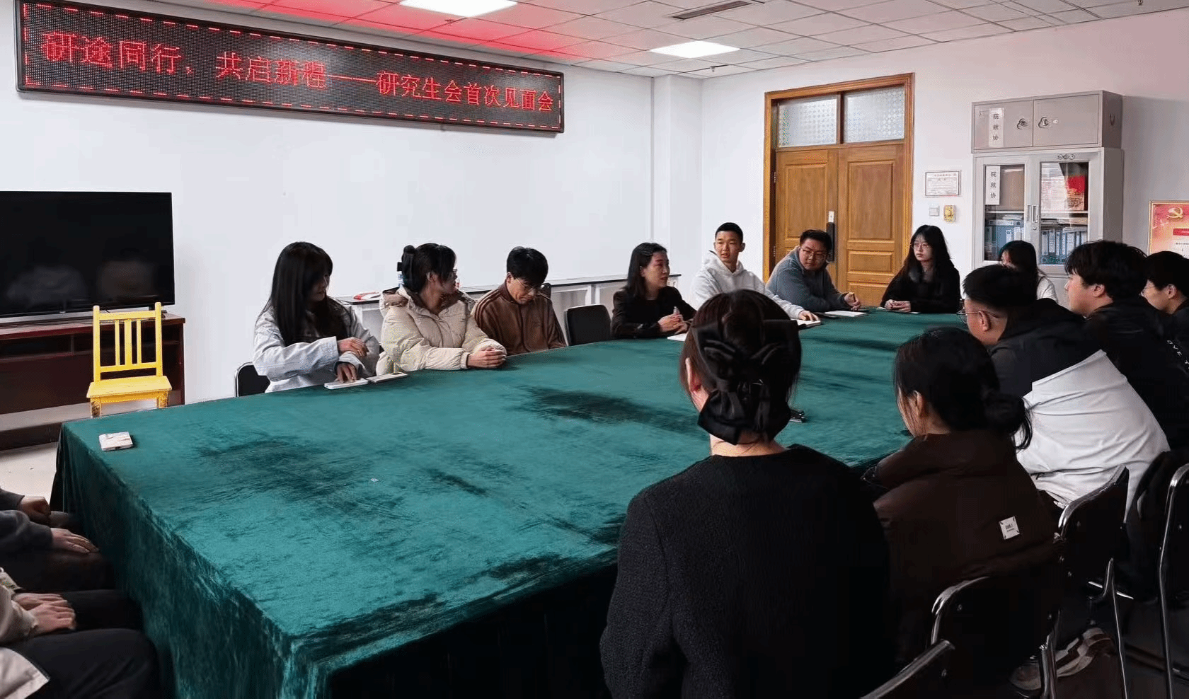 第五届研究生会全体成员见面会在主楼622会议室召开,本次见面会以“研途同行 共启新程”为主题,为新老成员提供了一个相识相知的平台,共同开启崭新的研途篇章。会议由研会指导老师李婷主持,全体研究生会成员参加。