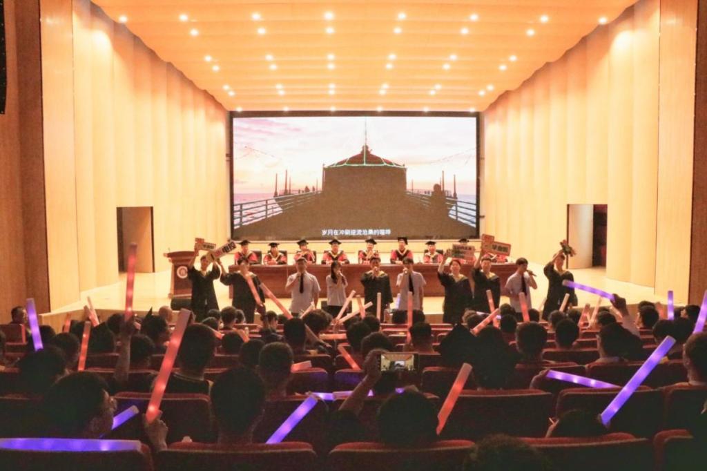 2024届毕业生共同迎来求学生涯中难忘的时刻。首先,全体人员共同观看了毕业季视频《你曾是少年》,一帧帧青春剪影将同学们拉回熟悉的场景,大家纷纷鼓掌,回味着一起走过的珍贵青葱岁月。