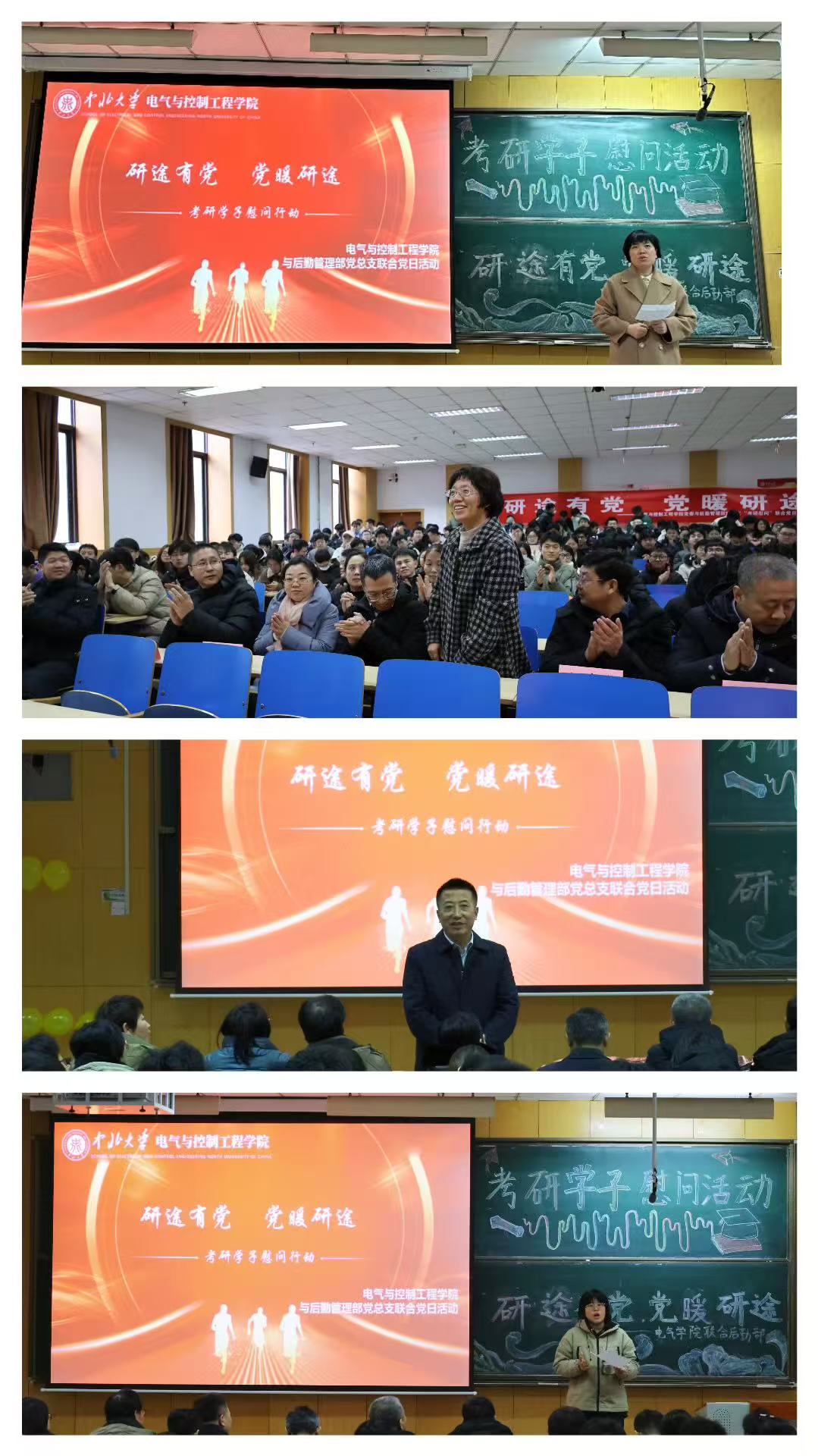 12月13日上午,电气与控制学院党委与学校后勤管理部党总支在11109H举行“研途有党 党暖研途”联合党日活动,为学院260余名考研学子加油鼓劲,充电赋能。学院党委副书记杜瑞平主持了本次活动。
