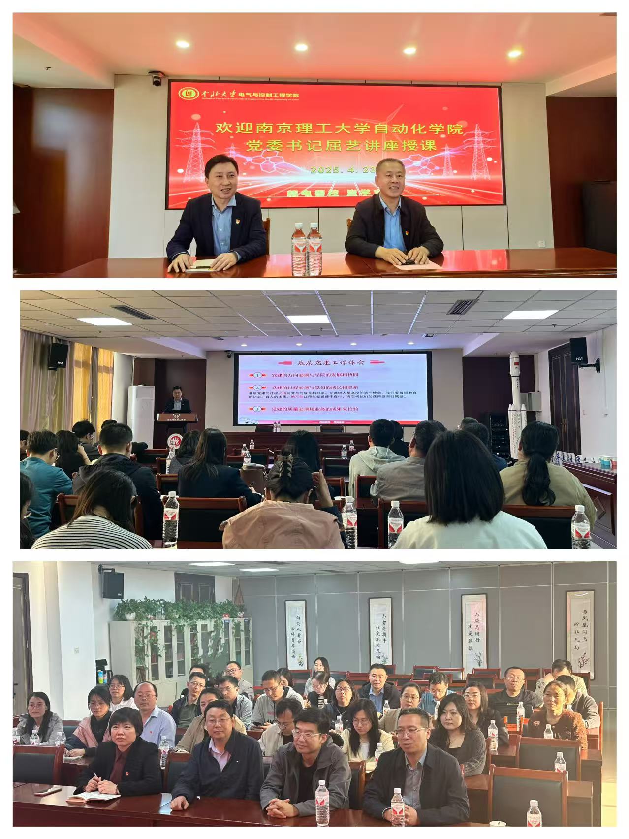 特邀南京理工大学自动化学院党委书记屈艺来院作题为《凝塑“五双融合”特色,推动基层党建工作提质增效》的专题讲座。讲座由学院党委书记赵正杰主持,学院领导班子成员、科级干部、系主任、党委委员及各党支部委员等参加学习。