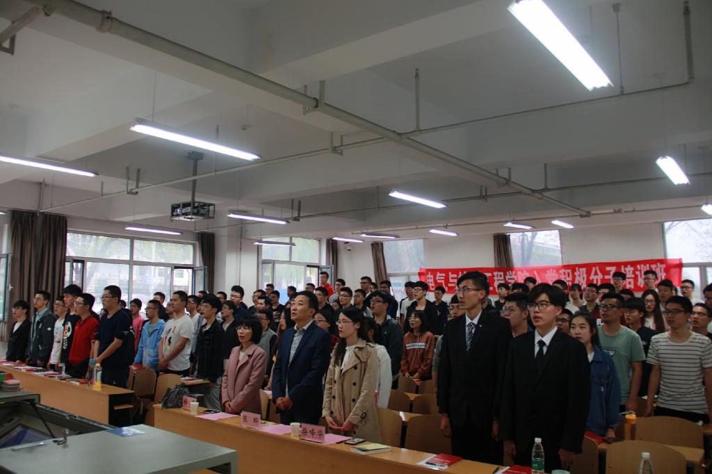 在嘹亮的国歌声中,开班典礼拉开了序幕,全体学员起立奏唱国歌。首先,杜苇书记宣读了日程安排和课堂纪律,要求全体学员上课时保持课堂安静,遵守课堂纪律,认真听课,做好笔记。禁止出现迟到、早退、缺勤现象,严格执行签到制度。并明确指出,入党积极分子应端正态度,积极主动地向党组织靠拢。