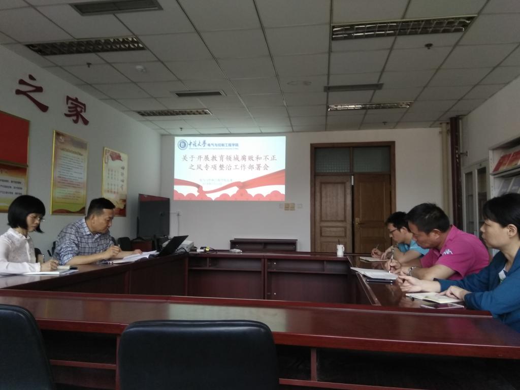 关于开展教育领域腐败和不正之风专项整治工作部署会议”,全体党委委员参加了会议,会议由党委书记陈晔主持。