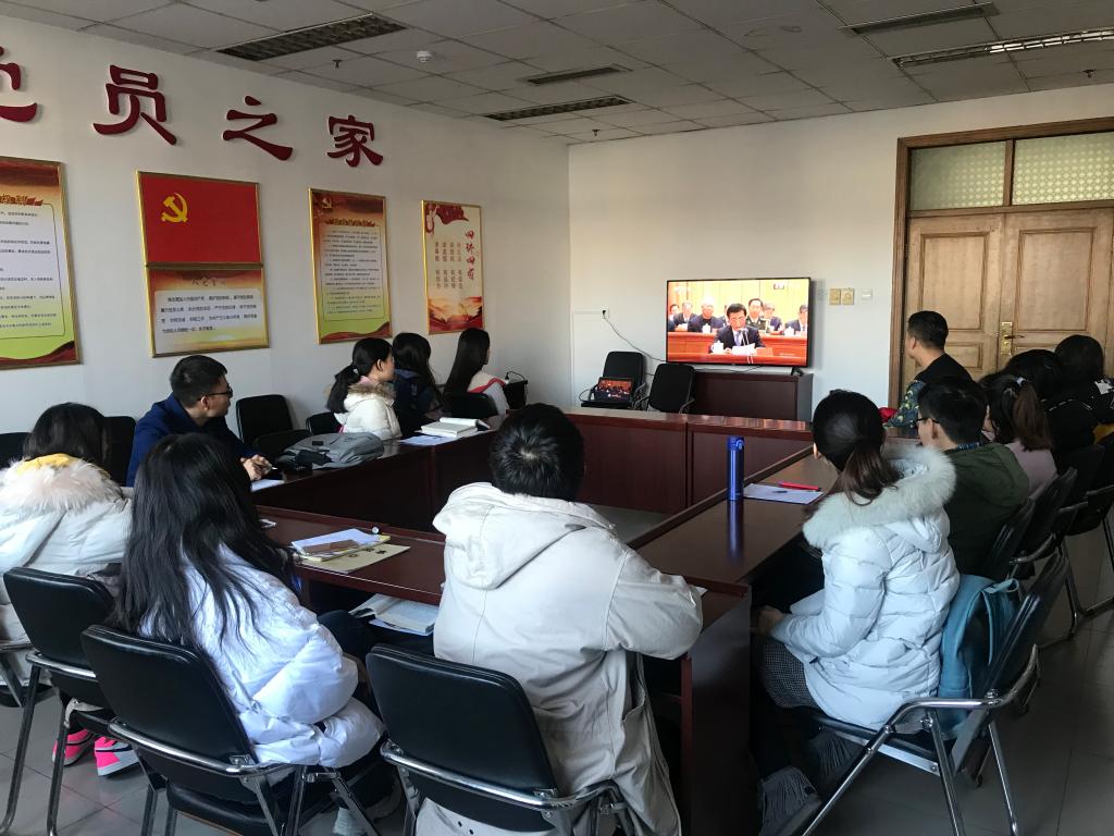 组织师生代表在主楼621收看庆祝改革开放40周年大会。
