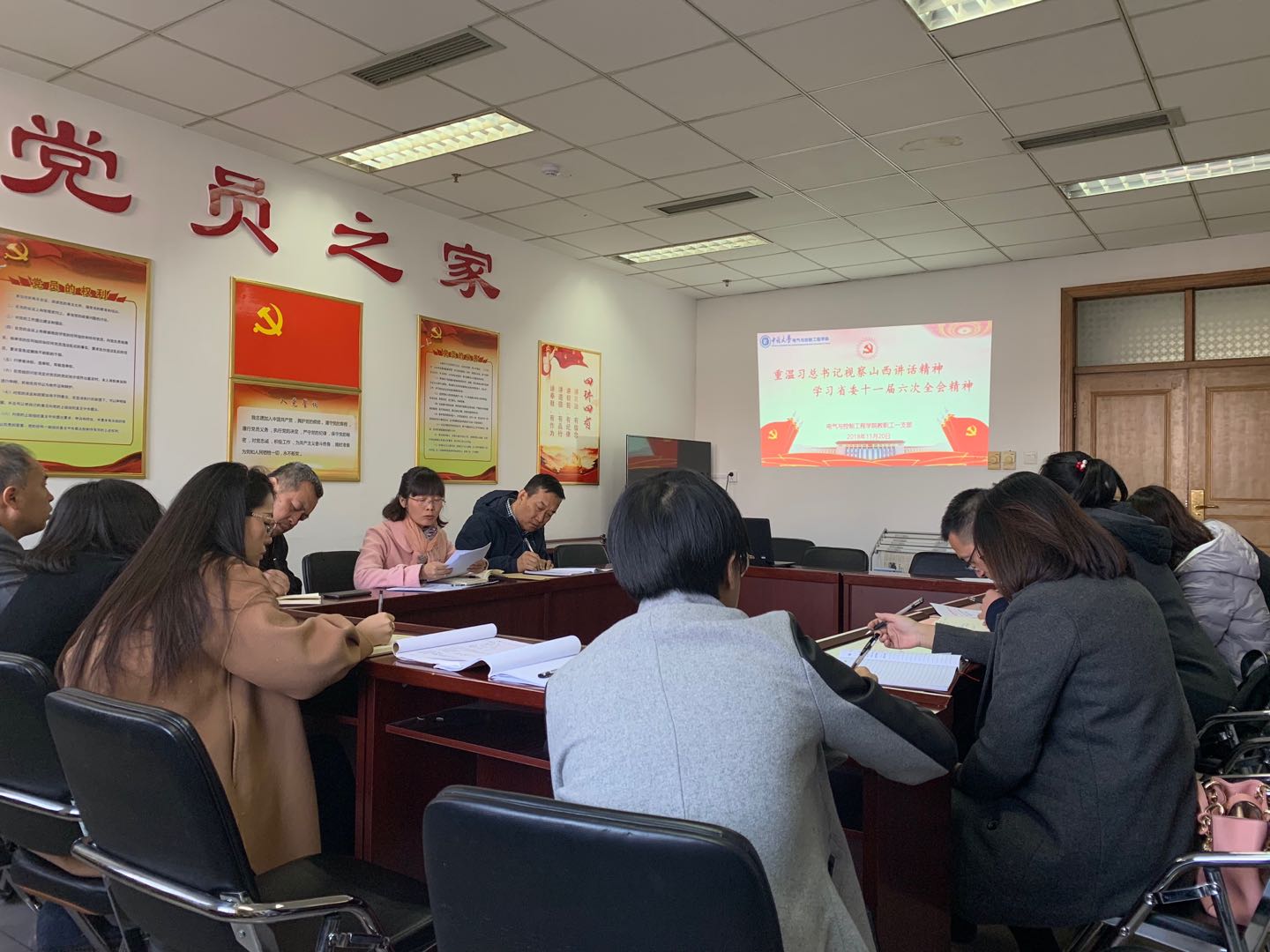 接下来杜书记结合《牢记殷切教导,书写时代答卷》,组织支部党员重温习近平总书记视察山西的讲话精神,深入学习贯彻落实山西省委十一届委员会第六次全体会议精神。