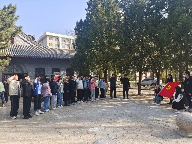 在炮火中建立的艰难发展史,并为一手拿书一手拿枪的前辈们深感敬佩,对校园的红色基因有了更深刻的认识,在坚定党员信念的同时也提高了同学们对学校的认同感与自豪感。参观结束后,各位党员怀着深深的使命感与荣誉感再次重温了入党誓词。