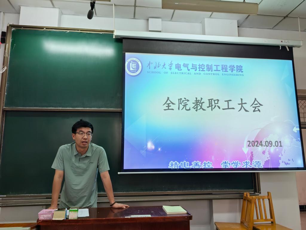 副院长邵星灵介绍了科研项目、科研经费、各类基金申报和获批、研究生培养、研究生教改和教学成果奖、电气工程专硕等情况,对科研项目申报、本子打磨、导师培养等进行了安排部署。