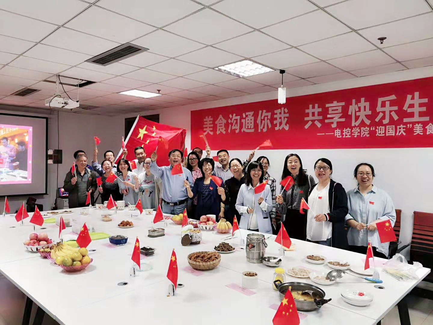 的文化生活,增强教职工均衡健康饮食的意识,营造学院团结和谐的良好气氛,稳步推进学院各项工作,学院工会于2019年9月26日(工会活动日)在主楼619室举办“迎国庆˙美食大赛”活动,此次活动主题为“美食沟通你我,共享快乐生活”。院党委书记陈晔,院党委副书记杜苇,教学副院长、院工会主席李晓,科研副院长任一峰等领导和众多教职工来到比赛现场为老师们加油助力,并进行品鉴。