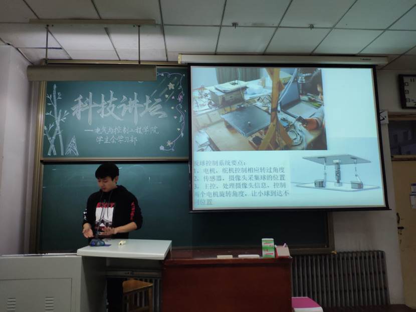 在本次科技讲坛中,翟晨萌学长就大学生电子设计竞赛的竞赛过程以及参与该比赛对自身发展的优势展开了翔实的论述,而姚泽民学长则就地铁的建设与运营进行了详解。两位同学都将科技知识与实验室相关知识以生动的方式活灵活现的展现在了在座同学们的眼前,解决了同学们对所学专业的科技水平与科研方向的一些疑惑,以及同学们对目前能参与的比赛有了更充分的认识,使同学们对于科研的兴趣大大提高。