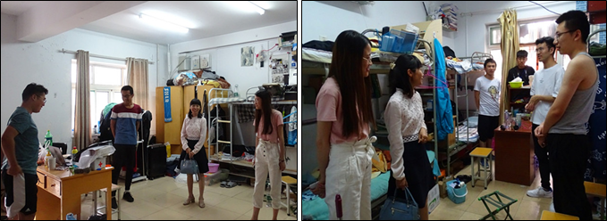 此次重点对宿舍卫生、用电安全以及防火、防盗等诸多方面进行了检查,对发现的问题现场提出并予以整改。经过将近一个多小时的精心检查,发现大部分宿舍卫生状况良好,基本做到了被褥衣物叠放整齐,地面、桌面干净整洁,用电合理、安全。但与此同时,仍发现个别宿舍“不达标”存在卫生死角,空气质量较差,电线随意拉等安全问题。院党委副书记杜苇及时指正,希望同学们及时打扫宿舍卫生,加强宿舍的安全用电等问题,切实做好夏季宿舍安全卫生工作。