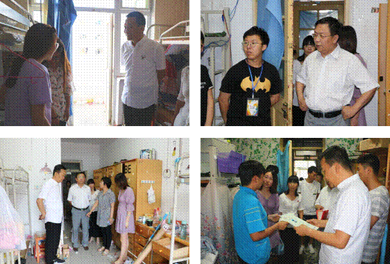 党委书记陈晔、党委副书记杜苇、教学副院长李晓、科研副院长任一峰在全体辅导员的陪同下深入宿舍,对毕业生展开深切的问候与祝福。