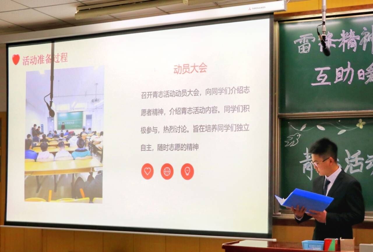 首先,主持人向在场嘉宾和各班答辩人员介绍了答辩形式,相关事项以及评分细则。各青支队代表使用PPT演示的方式讲述了他们这段时间的青志活动:绿化区植树,为学校带来一抹绿意;牛驼寨烈士陵园献花,感受英烈豪情;篮球友谊赛,挥洒激情汗水……每个青支队都有精彩绝伦的经历。现场嘉宾跟随着他们一起感受到了志愿活动给校园所带来的温暖。