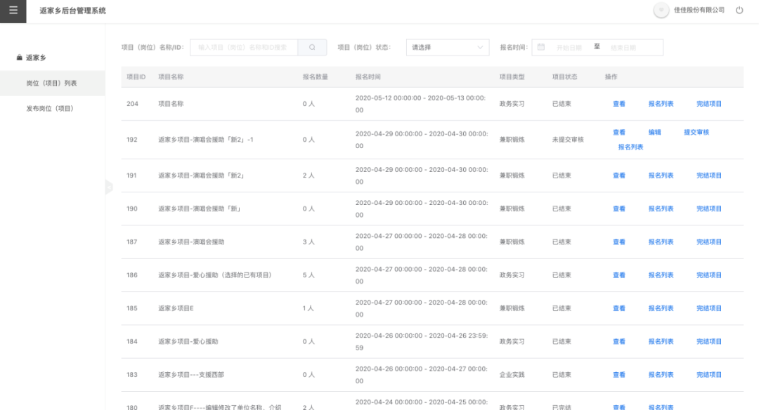 活动项目成功点击【岗位(项目)列表】进行岗位或项目管理