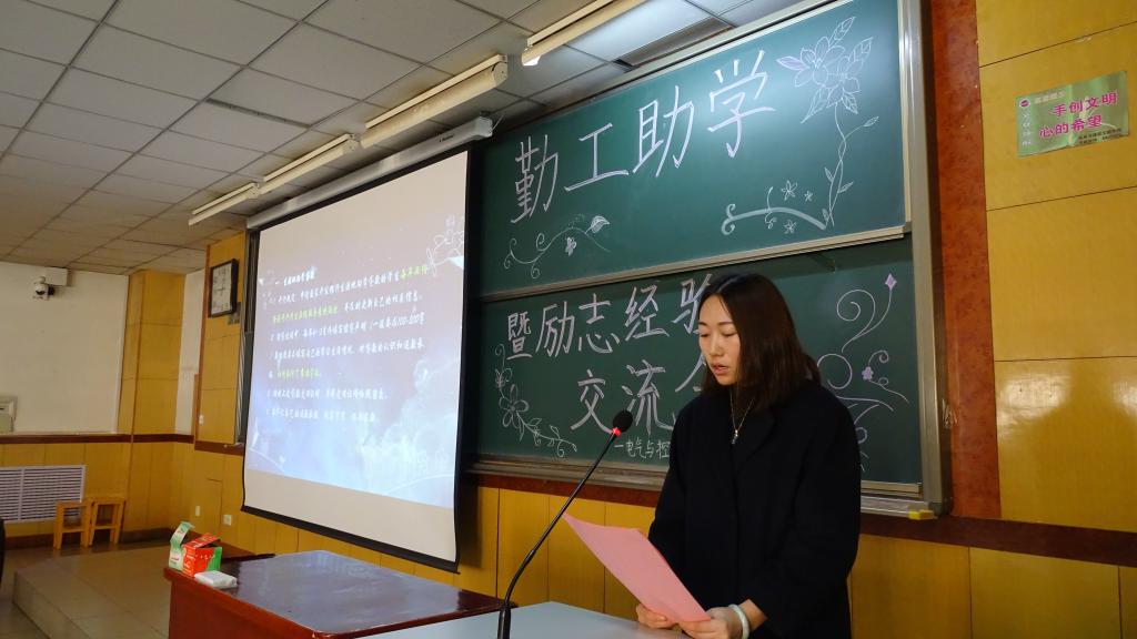 校园卫生队队长杨珊铭同学进一步向同学们介绍了勤工助学岗的上岗要求,也通过自身的上岗经历鼓励大家积极参加勤工助学岗位,锻炼自己的能力。全球十大網上博彩公司2018年国家奖学金获得者李师同学和国家励志奖学金获得者张玲玲同学作为优秀励志代表向大家分享了自己学习方法、比赛经验和勤工助学以及保研经历。