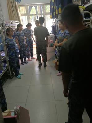 党委副书记杜苇,学生科老师柴峰华,学生科老师康超,十五营副营长岳煜东及各连队连长。
