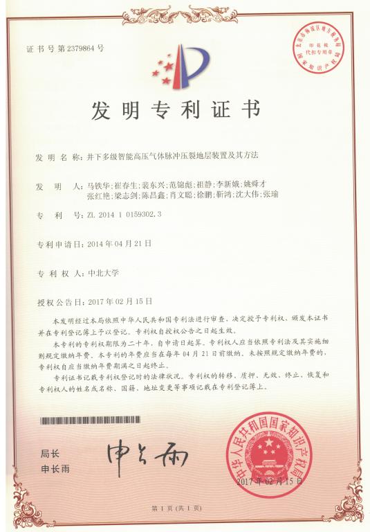 瓦斯预抽采的煤层爆破压裂过程虽与地下目标毁伤场景不同,但其物理本质相通。团队在军工地下目标毁伤动态测控技术及装备研究基础上,借助“1331工程”支持,开展技术融合创新研究。针对煤矿井下瓦斯预抽采增透爆破压裂存在的问题,提出了超临界CO2动态压裂技术的新方案,其主要创新点是着眼不同煤岩特性优化压裂工艺、动态压力可控,获发明专利授权6项,目前研制生产压裂器,在矿区成功应用,在减少钻孔数量同时通过压裂大大提升了瓦斯预抽采效率,降低了高瓦斯煤层开采的安全风险、减少了开采过程瓦斯排放,环保效益显著,而且煤层气作为清洁能源具有很好的经济价值。该成果入围首届山西省专利奖(2017年申报,等待结果),参展我省“大众创业万众创新活动展”,得到了省领导关注,正在产学研合作推广应用。